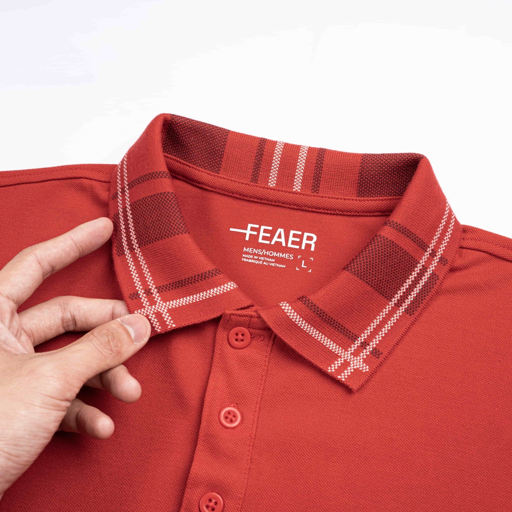 Polo Cheval nổi bật với gam đỏ trầm mang tinh thần năng lượng và may mắn. Cổ áo dệt phối họa tiết kẻ tạo điểm nhấn tinh tế, giúp tổng thể gọn gàng và chỉn chu hơn so với polo trơn thông thường.