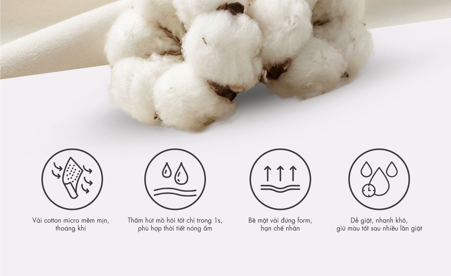 • Bề mặt vải mịn, ít nhăn, giữ form ổn định sau nhiều lần giặt