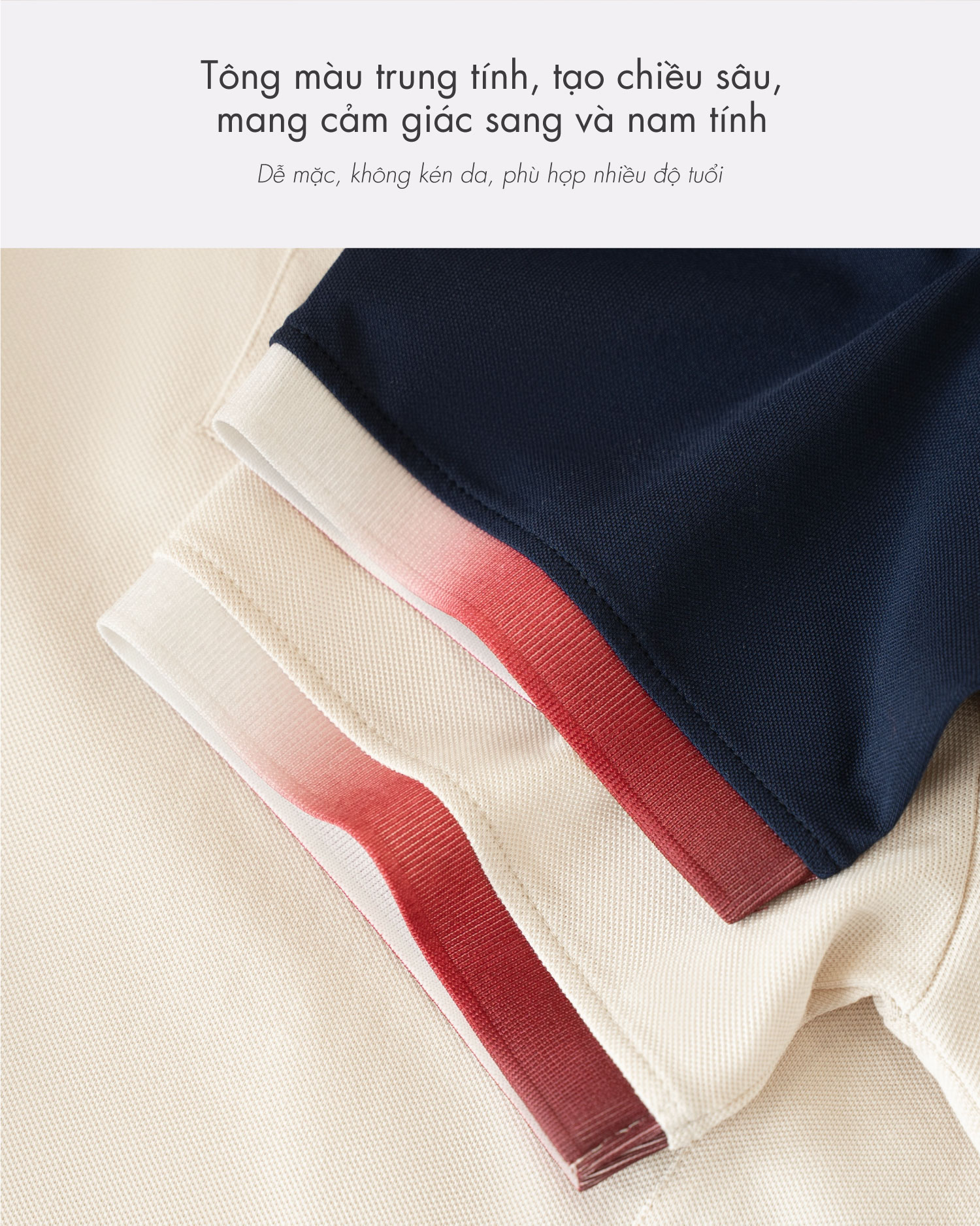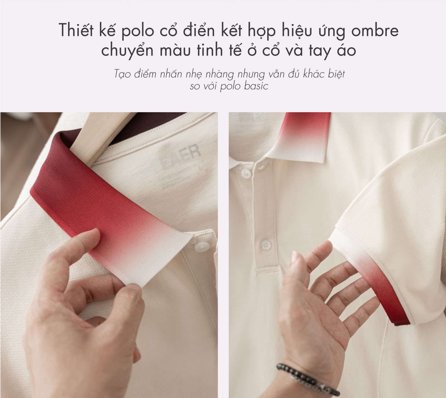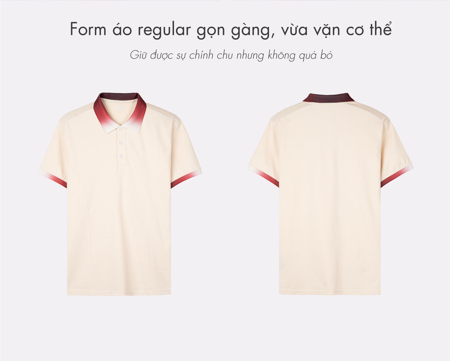 • Thiết kế polo cổ bẻ cổ điển, phối ombre tạo điểm nhấn vừa phải